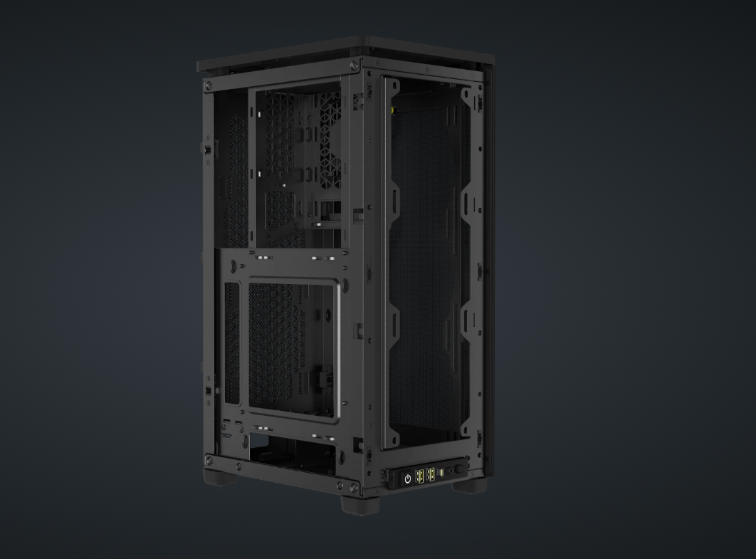Carcasa Corsair 2000D Airflow Mini-ITX, panou tempered glass, 3x 2.5″ drive bays, dimensiune 458x271x200, negru
