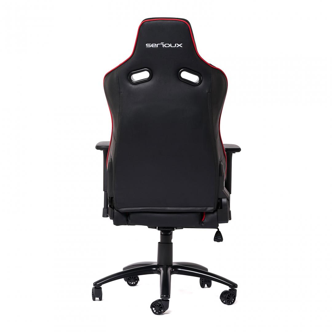 Scaun gaming X by Serioux, Kessian, ajustabil, piele sintetica, piston pe gaz, manere reglabile, baza stea cu 5 picioare, greutate maxima admisa 150Kg, perne detasabile, negru si rosu